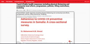 Congratulations to Dr. Mohamed A.M Ahmed for the participation of IAS Covid-19 Virtual Conference, and presented his paper on Adherence to COVID-19 preventive measures in Somalia: A cross-sectional survey.