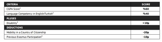 The evaluation criteria has been determined by SCU Erasmus+ Institutional Coordinator within the scope of the Erasmus+ Handbook for Higher Education Institutions published by the Directorate for EU Affairs of the Ministry of Foreign Affairs of the Republic of Türkiye (Turkish National Agency), the Directive of International Relations Office, and Directive of Erasmus Program of the Sivas Cumhuriyet University, Republic of Türkiye. Selection Criteria for student Mobility:
